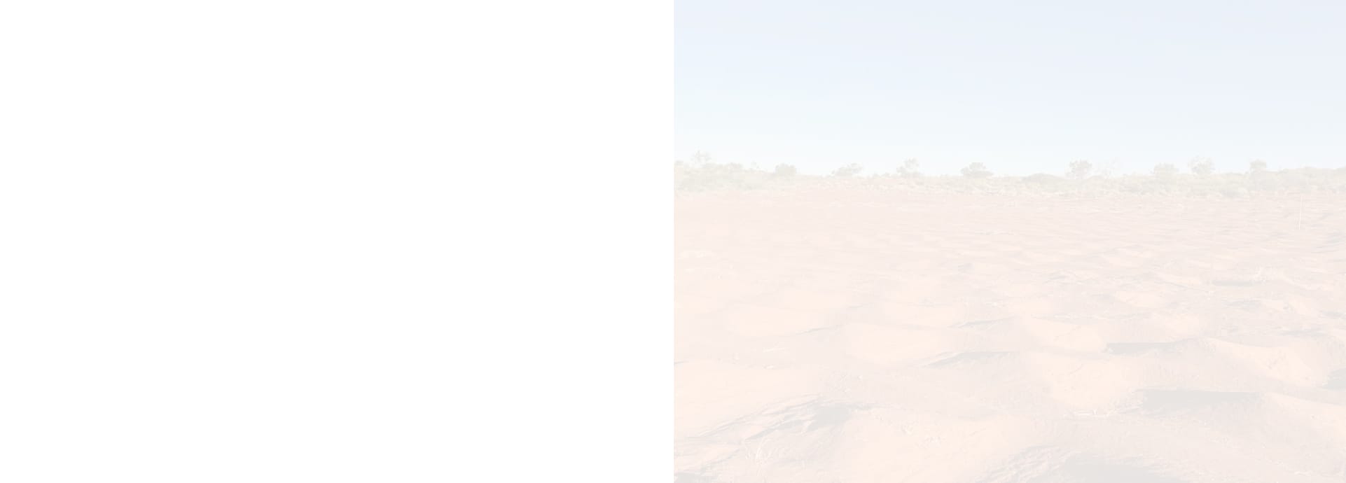 A light, desaturated image showing a barren landscape with a series of small, evenly spaced mounds in a dry, sandy area. Sparse vegetation is visible on the horizon under a pale sky.